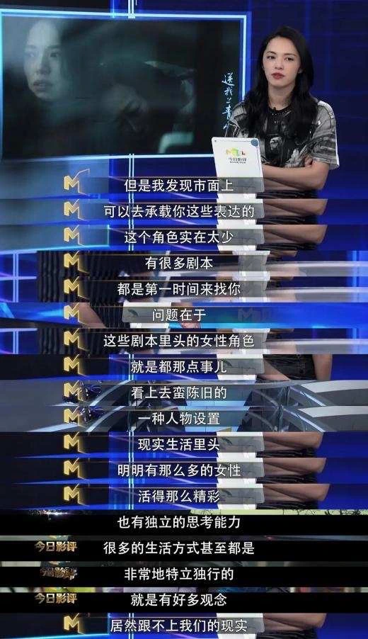 姚晨在一档节目中提到,明明这个年纪的女演员到了一个演员最成熟的状态,但市场上适合她们的戏越来越少,能承载青衣们表达欲望的角色也越来越稀有。
